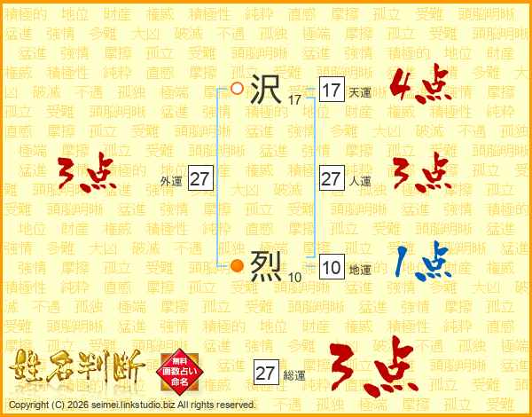 沢烈さんの総運は27画の3点!