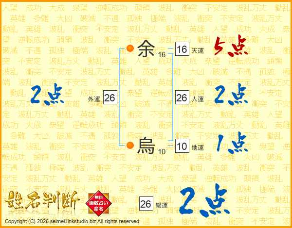 余烏さんの人運は26画の2点!