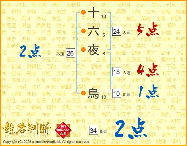 十六夜烏さんの総運は34画の2点!