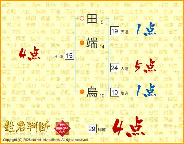田端烏さんの総運は29画の4点!