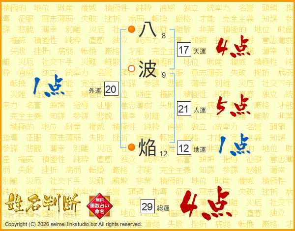 八波焔さんの総運は29画の4点!