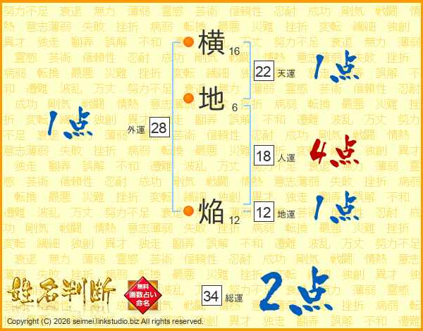横地焔さんの総運は34画の2点!