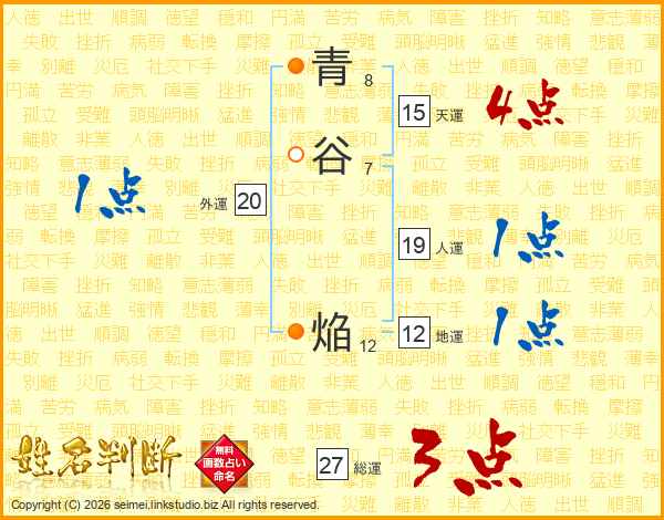 青谷焔さんの総運は27画の3点!