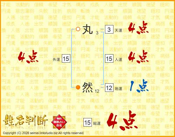 丸然さんの人運は15画の4点!