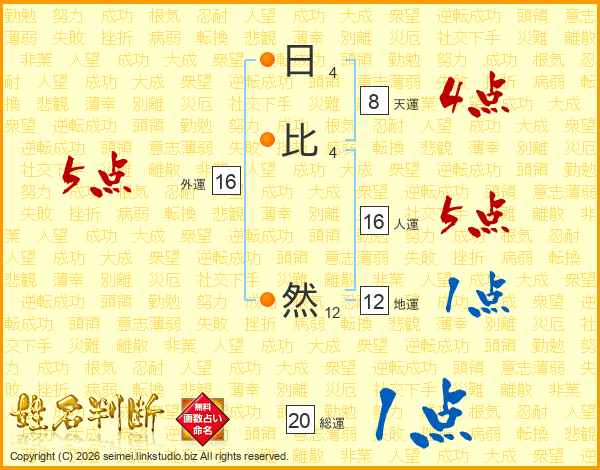 日比然さんの総運は20画の1点!