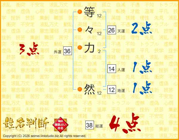 等々力然さんの総運は38画の4点!