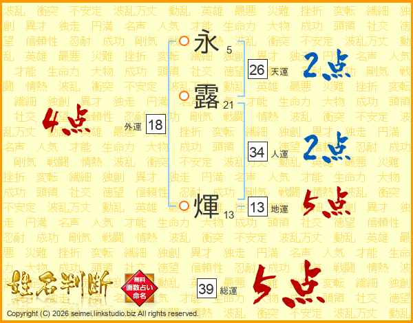 永露煇さんの総運は39画の5点!
