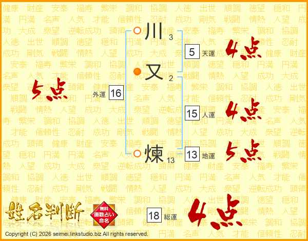 川又煉さんの総運は18画の4点!