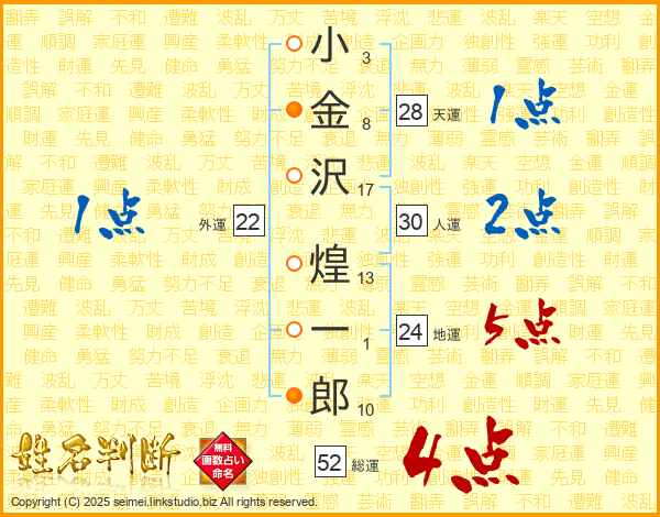 小金沢煌一郎さんの総運は52画の4点!