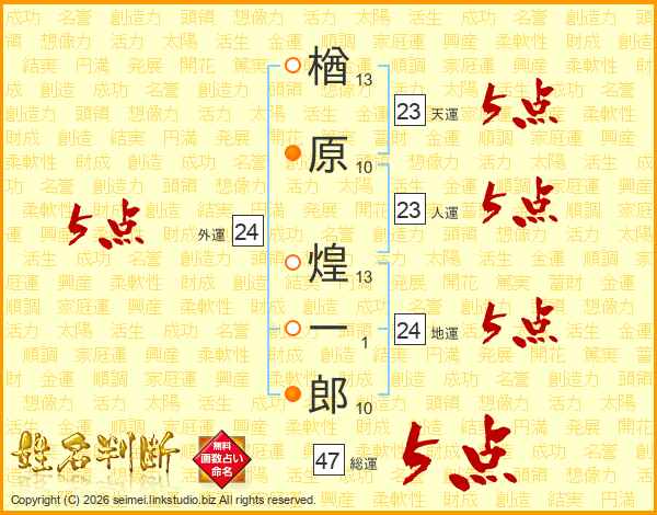 楢原煌一郎さんの総運は47画の5点!