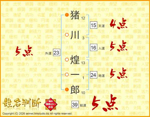 猪川煌一郎さんの総運は39画の5点!