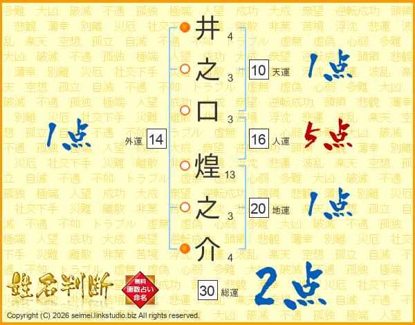 井之口煌之介さんの総運は30画の2点!