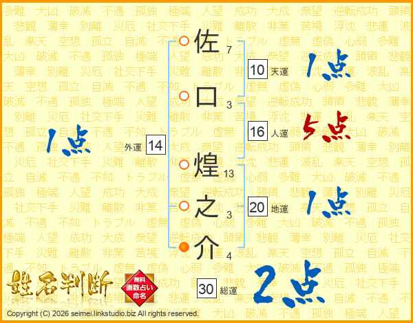 佐口煌之介さんの総運は30画の2点!