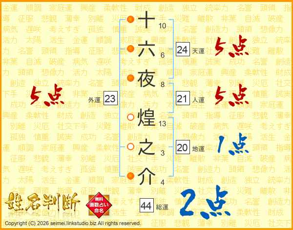 十六夜煌之介さんの総運は44画の2点!