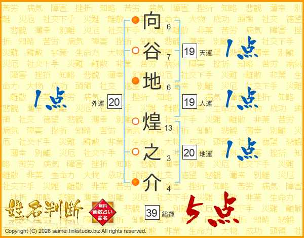 向谷地煌之介さんの総運は39画の5点!