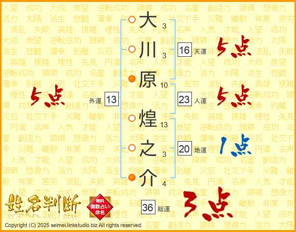 大川原煌之介さんの人運は23画の5点!