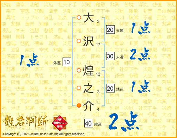 大(3画)沢(17画) 煌(13画)之(3画)介(4画)