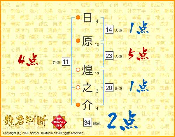 日原煌之介さんの総運は34画の2点!