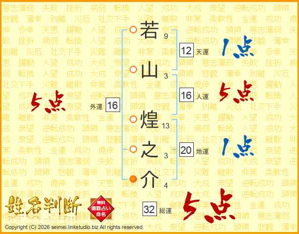 若(9画)山(3画) 煌(13画)之(3画)介(4画)