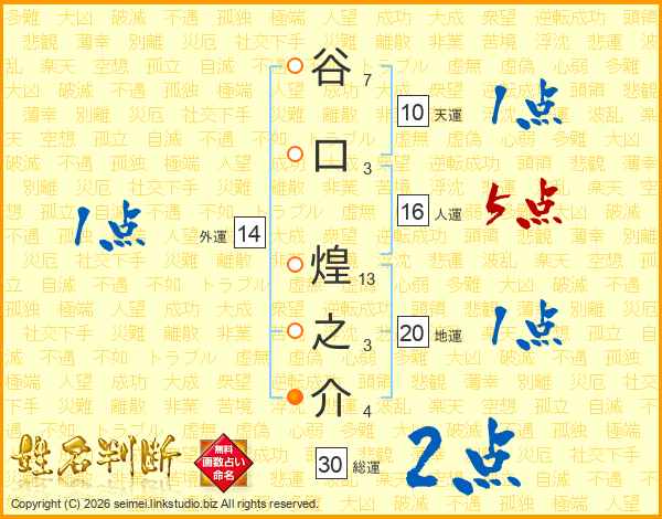 谷口煌之介さんの総運は30画の2点!