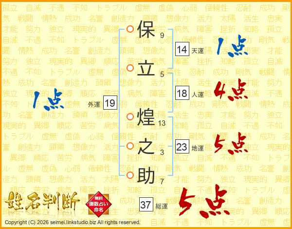 保立煌之助さんの総運は37画の5点!