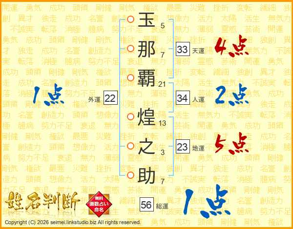 玉那覇煌之助さんの天運は33画の4点!