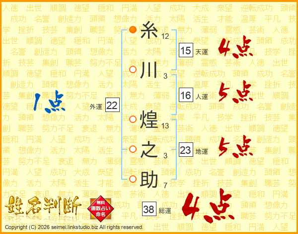 糸川煌之助さんの総運は38画の4点!