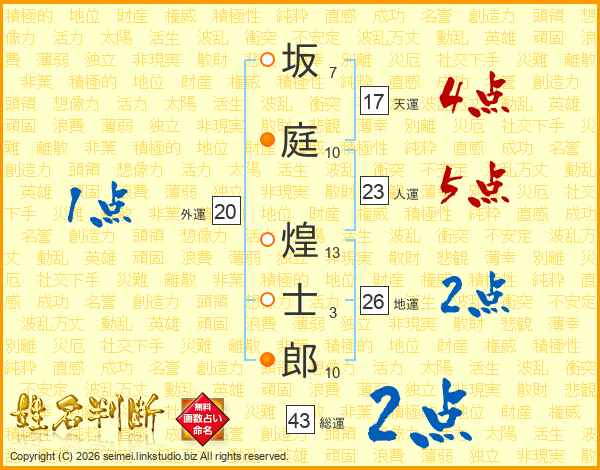 坂庭煌士郎さんの天運は17画の4点!