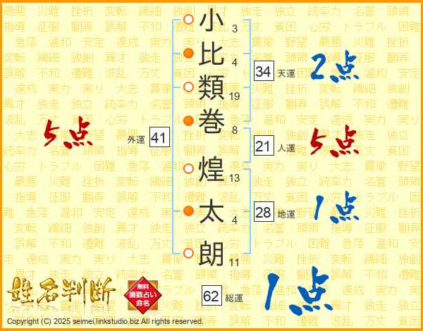 小比類巻煌太朗さんの人運は21画の5点!