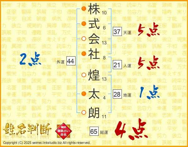 株式会社煌太朗さんの総運は65画の4点!