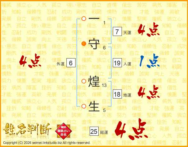 一守煌生さんの総運は25画の4点!
