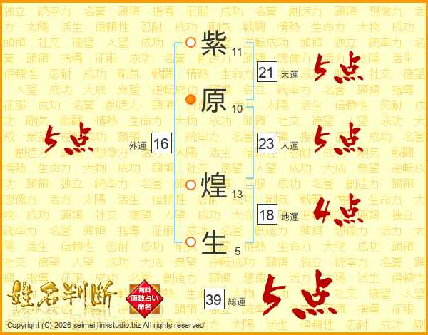 紫原煌生さんの総運は39画の5点!