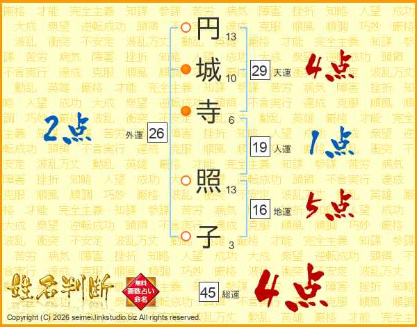 円城寺照子さんの総運は45画の4点!