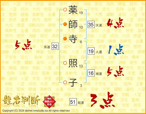 薬師寺照子さんの総運は51画の3点!