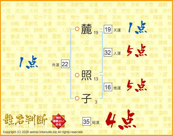 麓照子さんの総運は35画の4点!