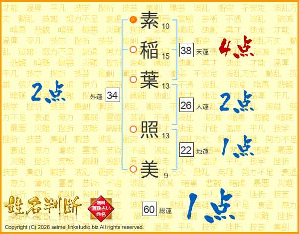 素稲葉照美さんの総運は60画の1点!