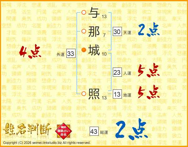 与那城照さんの総運は43画の2点!