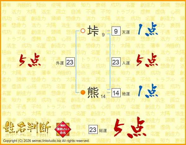 垰熊さんの人運は23画の5点!