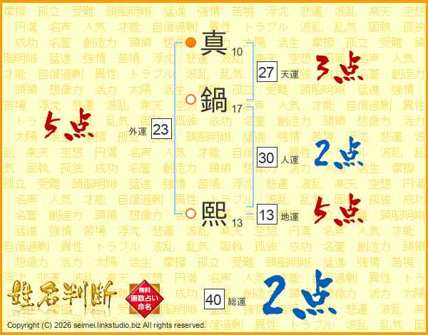 真鍋熙さんの総運は40画の2点!