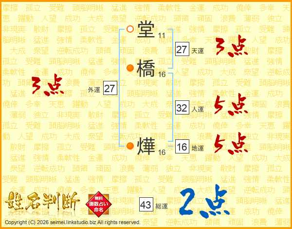堂橋燁さんの総運は43画の2点!