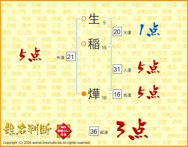 生稲燁さんの人運は31画の5点!