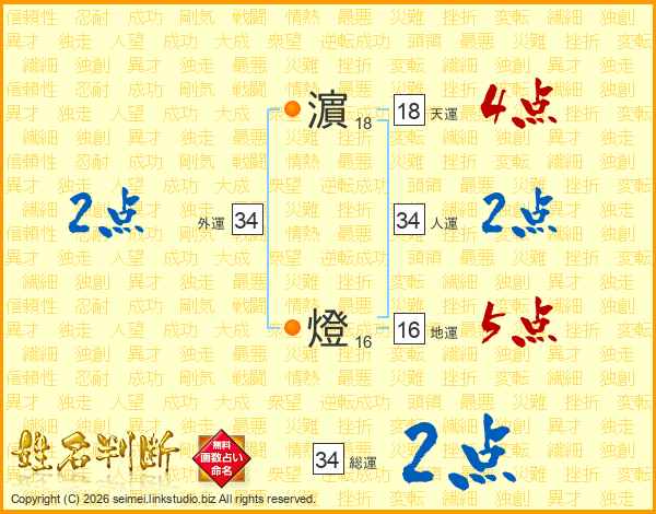 濵燈さんの総運は34画の2点!