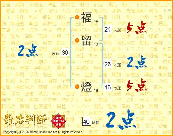 福留燈さんの総運は40画の2点!