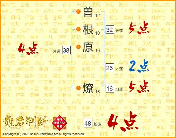 曽根原燎さんの人運は26画の2点!