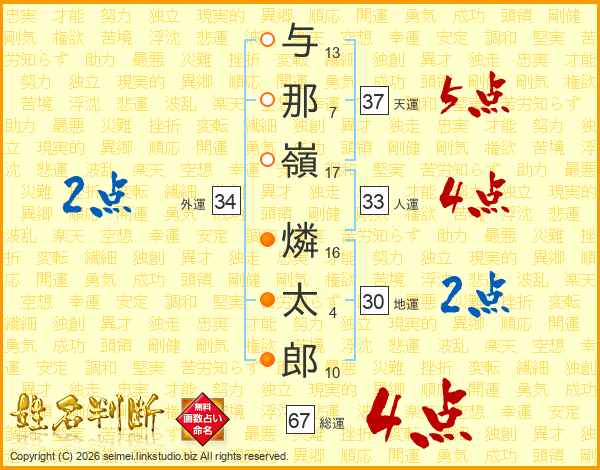 与那嶺燐太郎さんの天運は37画の5点!