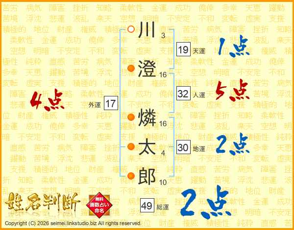 川澄燐太郎さんの総運は49画の2点!