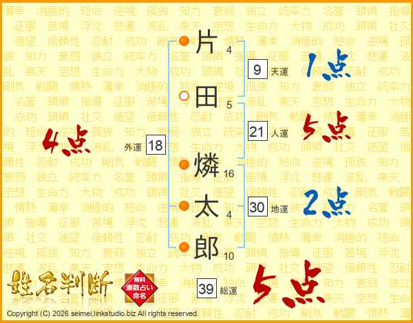 片田燐太郎さんの総運は39画の5点!