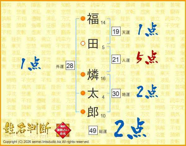 福(14画)田(5画) 燐(16画)太(4画)郎(10画)