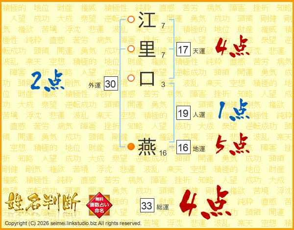 江里口燕さんの総運は33画の4点!
