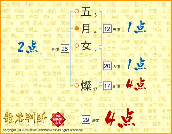 五月女燦さんの総運は29画の4点!